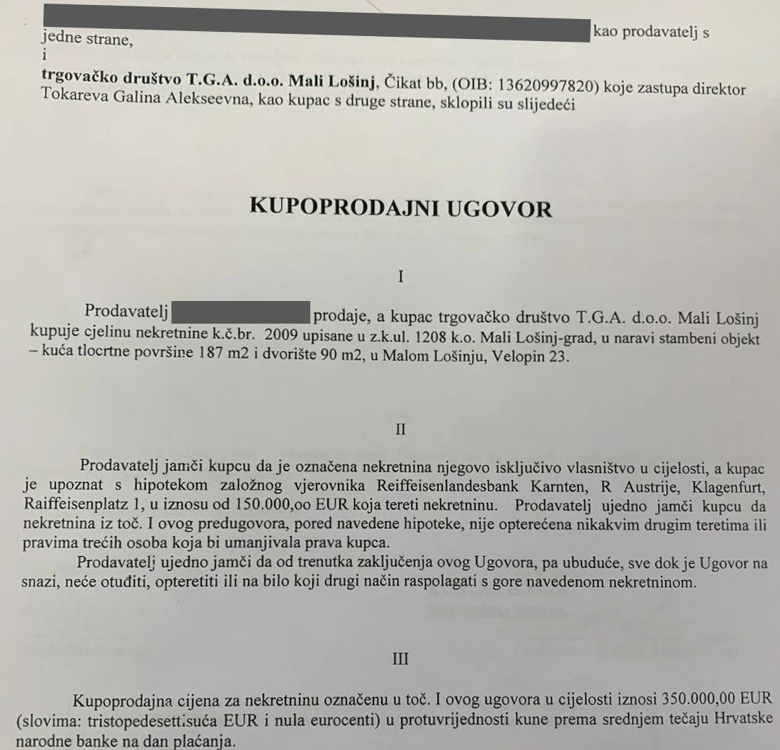 Hrvatski mediji već su ranije pisali kako je tvrtka Katina 2003. godine od lošinjske Jadranke za milijun eura kupila vilu Karolinu, a Mayya Tokareva je postala njezina vlasnica 2017. godine.
